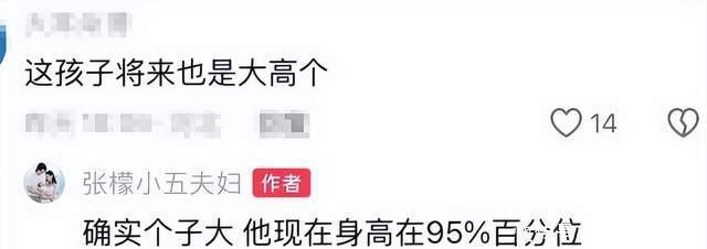 被爸爸妈妈精心照顾的Dylan养的很壮实,11个月大还在吃母乳的他小脸肉嘟嘟的,个子也超大,有网友就夸Dylan将来肯定是大高个,对此,张檬还回应了,她骄傲表示:“确实个子大,他现在身高在95%”,又高又壮。